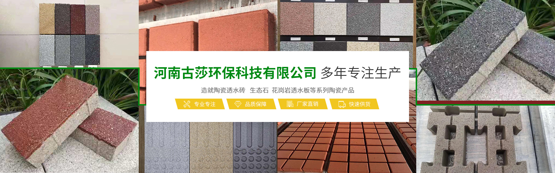 河南古莎環保科技有限公司總坐落于交通樞紐城市鄭州,是一家具備研發、生產、銷售能力為一體的綜合性現代化陶瓷企業。本公司專業生產經營生態陶瓷透水磚、生態鋪石、PC仿石材透水磚、PC仿石材景墻磚、普通透水磚、燒結磚等系列產品,完善的研發團隊,完善的生產流水線設備,打造完善的陶瓷企業。古莎環保科技現代化陶瓷企業是美化城市,改善生活環境質量的生態環保產品,可廣泛應用于公共建筑廣場、城市道路、公園、藝術景觀、廊道、房地產、別墅住宅小區、地鐵口、車站、高速公路服務區等。古莎環保科技在原有陶瓷企業基礎上,另拓展園林綠化、市政施工、瀝青包工包料施工、公路維修等業務板塊,專業培訓了一些園林綠化、市政施工技術人員,并有多年的施工養護經驗以及建筑工程經驗。保證市政工程施工質量以及園林綠化后期養護規范化、專業化。古莎環??萍妓裱钠髽I與品牌發展思路,是奠定在品質與產品應用之上。環保理念由我們共同倡導,理性思考,以推進步,感性溝通,以共建優越。古莎環??萍寂c大家真誠合作,攜手共進,為助力海綿城市建設,建筑高品質的綠色城市生活貢獻一份力量!